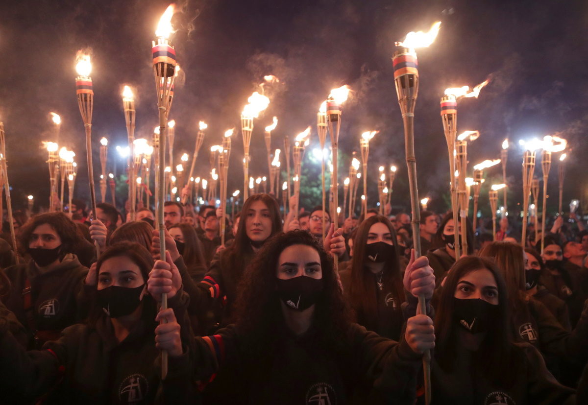 Στρατιώτες, κληρικοί, γυναίκες με μικρά παιδιά και κυβερνητικά στελέχη, με επικεφαλής τον πρωθυπουργό Νικόλ Πασινιάν, έκαναν αυτήν την πορεία, όπως κάθε χρόνο στις 24 Απριλίου, την επέτειο της σφαγής του 1915. Ο Καθολικός Πατριάρχης της Αρμενικής Εκκλησίας Καρεκίν Β΄ τέλεσε την επιμνημόσυνη δέηση.