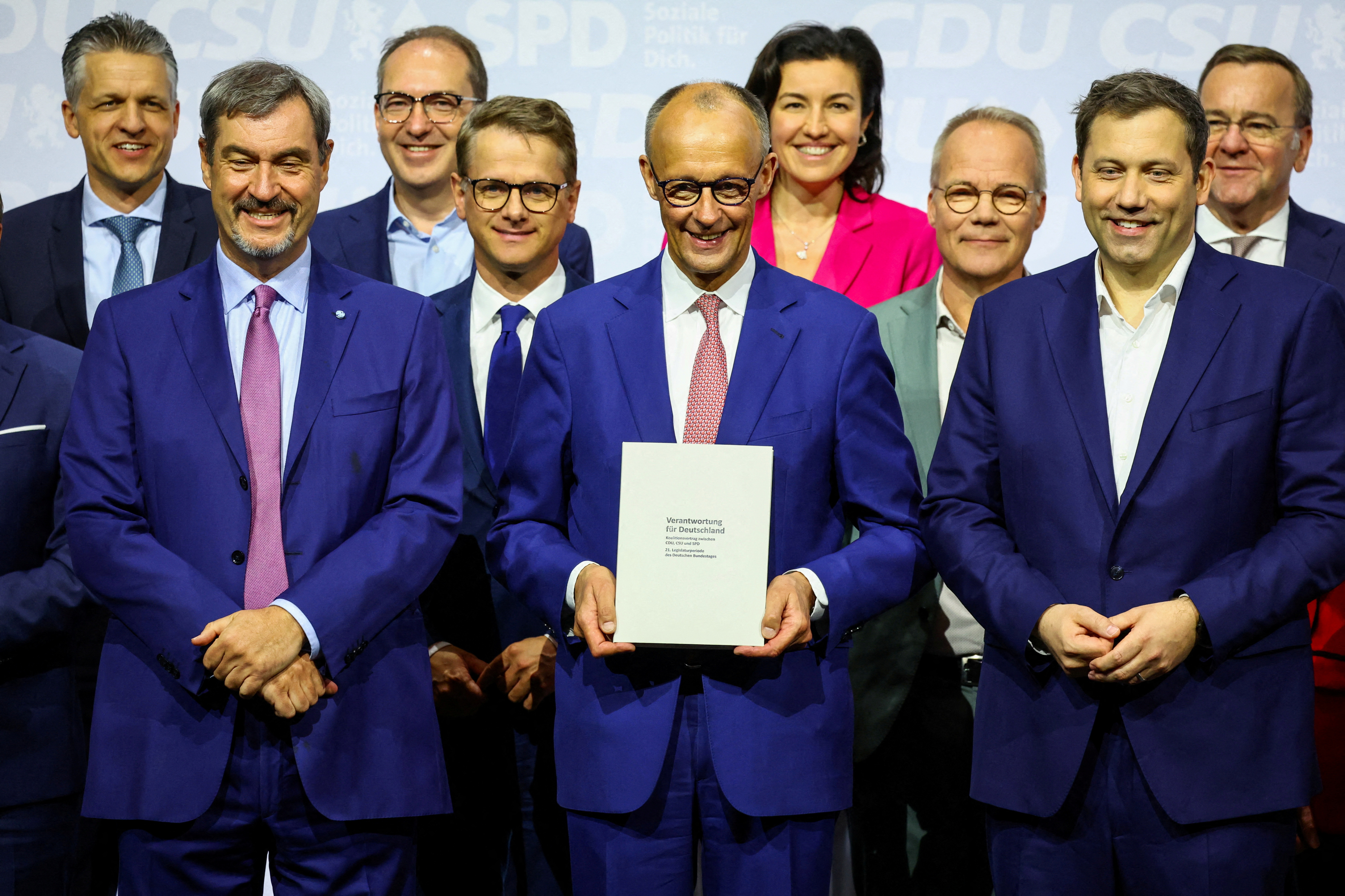 Η Χριστιανική Ένωση (CDU/CSU) και το Σοσιαλδημοκρατικό Κόμμα (SPD) υπέγραψαν σήμερα την προγραμματική συμφωνία τους, ανοίγοντας και τυπικά τον δρόμο για τον σχηματισμό του νέου ομοσπονδιακού κυβερνητικού συνασπισμού στην Γερμανία, υπό τον αρχηγό του CDU Φρίντριχ Μερτς, ο οποίος υποσχέθηκε «συστηματική και δυναμική εργασία από την πρώτη μέρα».