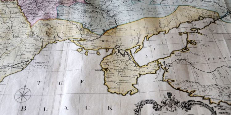 Ο παραπάνω χάρτης του 1769 δείχνει την χερσόνησο της Κριμαίας στο κέντρο, σε κίτρινο χρώμα όπως ειναι η Τουρκία και η Ταρταρία. Η Ρωσία εμφανίζεται με μπλε χρώμα.
