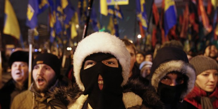Πολλές χιλιάδες διαδηλωτές συγκεντρώθηκαν χθες το βράδυ στο κέντρο του Κιέβου ανταποκρινόμενοι στο κάλεσμα των ακροδεξιών κομμάτων Σβόμποντα και Δεξιός Τομέας για την πορεία με σκοπό να τιμηθεί η 106η επέτειος από τη γέννηση του Στέπαν Μπάντερα—εκ των ιστορικών ηγετών των Ουκρανών εθνικιστών την περίοδο 1930-1950.