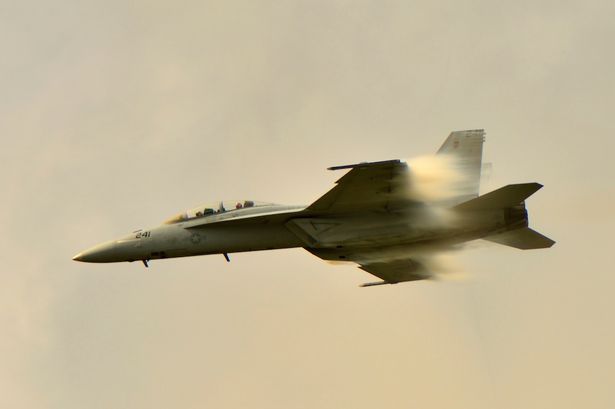 Η εκπληκτική φωτογραφία απεικονίζει ένα μαχητικό F-18 Super Hornet 2 jet να το αγκαλιάζει ενας κώνος ατμού.