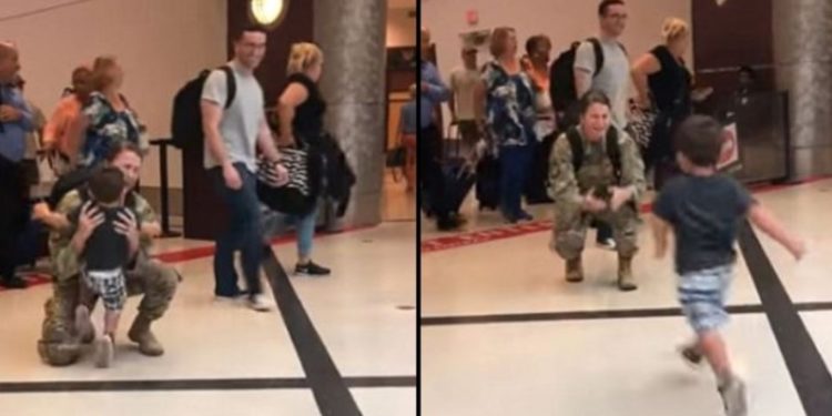 Το συγκλονιστικό βίντεο στο οποίο μια Σμηνίας της Πολεμικής Αεροπορίας των ΗΠΑ, μητέρα ενός αγοριού δύο ετών, επιστρέφει πίσω στην πατρίδα της από την αποστολή της στην Ιορδανία και βλέπει για πρώτη φορά μετά από καιρό το παιδί της, κάνει το γύρω του διαδικτύου και προκαλεί συγκίνηση.