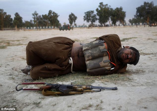 Καλυμένος απο την κορυφή μέχρι τα πόδια με προστατευτικό εξοπλισμό ο Αφγανός πυροτεχνουργός έθεσε την ζωή του σε κίνδυνο, όπως δείχνουν οι φωτογραφίες, οταν προσπάθησε να εξουδετερώσει εκρηκτικά στο γιλέκο ενός καμικάζι.