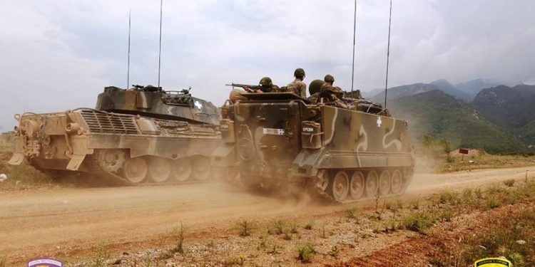 Κίνηση τεθωρακισμένων οχημάτων μεταφοράς προσωπικού (ΤΟΜΠ) M113 για παροχή υποστηρικτικού πυρός σε φίλια τμήματα.