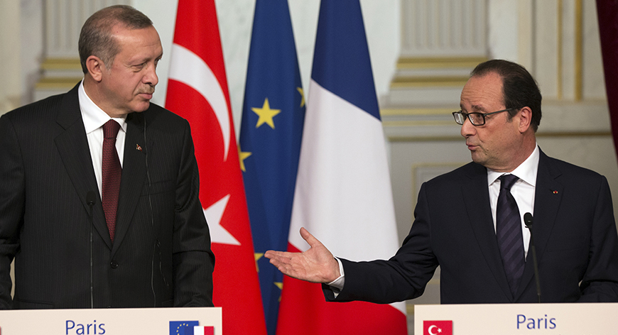 Η Τουρκία, ωστόσο, διεξάγει «επιχειρήσεις κατά των Κούρδων, οι οποίοι πολεμούν το ΙΚ με την υποστήριξη του συνασπισμού», δήλωσε ο Ολάντ εκφράζοντας τη λύπη του για το γεγονός αυτό.