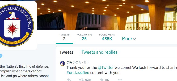 Περιττό να πούμε ότι έγινε χαμός από followers με το που “άνοιξε” η CIA και στο twitter.
