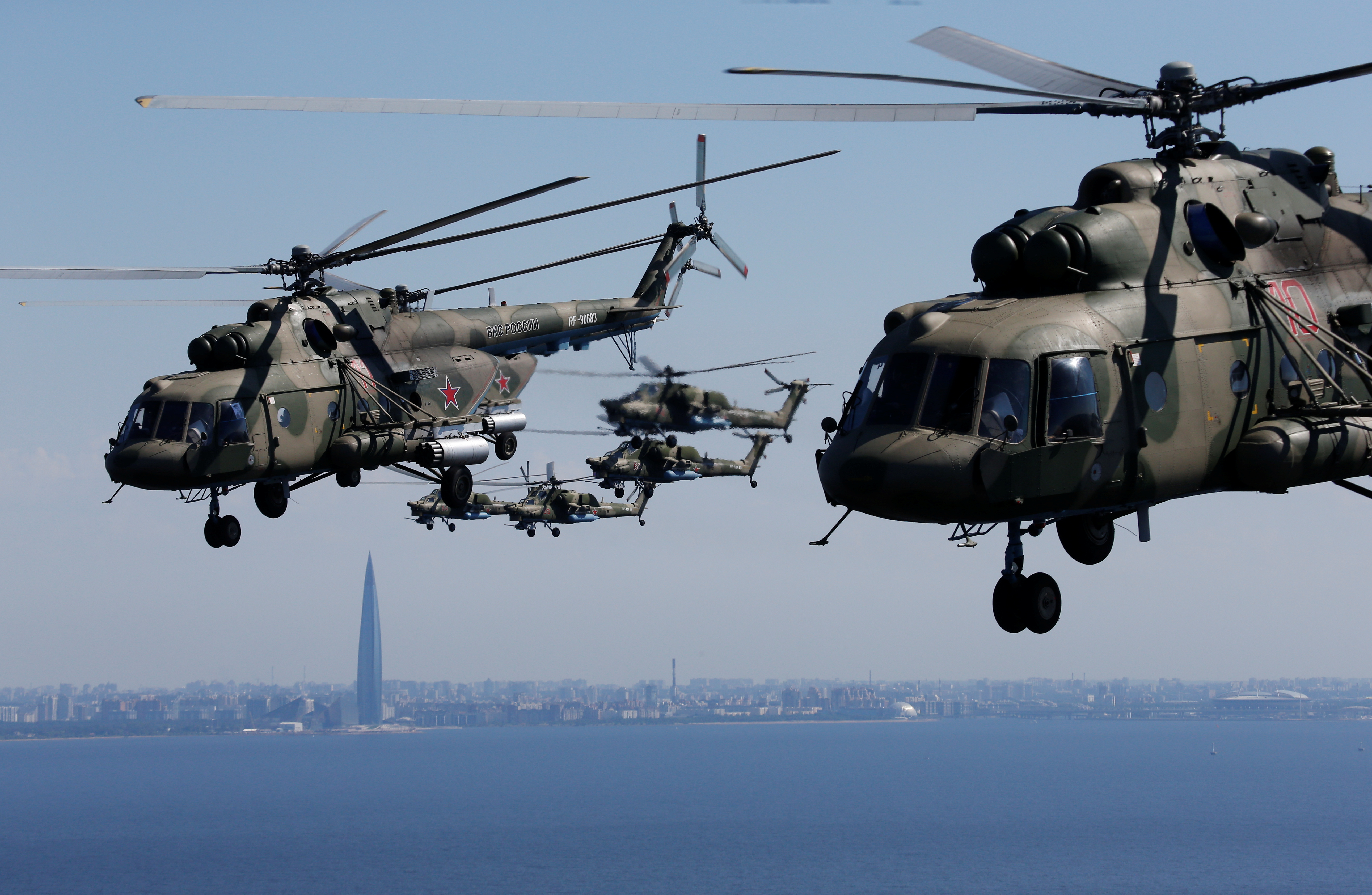 Εκτός από τα τεθωρακισμένα, ρωσικά μαχητικά, αεροσκάφη και ελικόπτερα, σκέπασαν τη Μόσχα