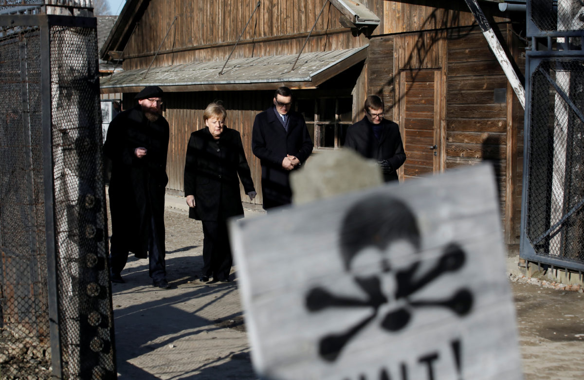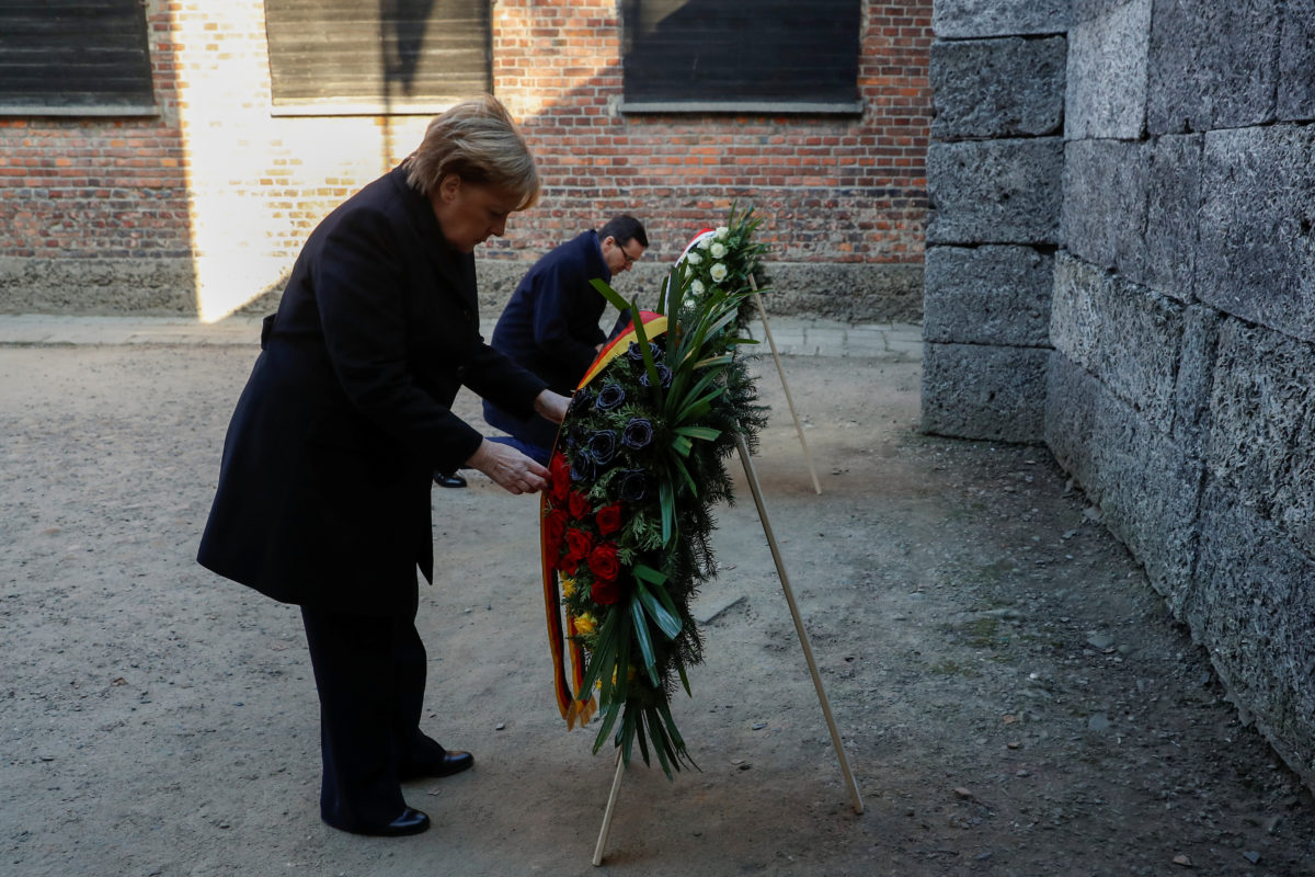 Η Αγγελα Μέρκελ, που είναι η πρώτη καγκελάριος της Γερμανίας που επισκέπτεται το Άουσβιτς μετά τον Χέλμουτ Σμιτ το 1977 και τον Χέλμουτ Κολ το 1989 και 1995, στα 14 χρόνια της ηγεσίας της έχει επισκεφθεί το Ράβενσμπρουκ, το Ντάχαου, το Μπούχενβαλντ και το μνημείο του Ολοκαυτώματος Γιαντ Βασέμ στην Ιερουσαλήμ. Ηταν η πρώτη γερμανίδα ηγέτις που εκφώνησε ομιλία στην Κνεσέτ, όπου μίλησε και πάλι για το «όνειδος» που κηλιδώνει τους Γερμανούς.