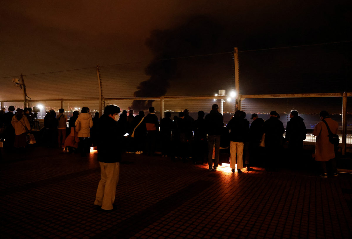 Το αεροπλάνο κόπηκε στη μέση αφού κάηκε ολοσχερώς.  Το αεροδρόμιο Χανέντα είναι από τα πιο πολυσύχναστα της Ιαπωνίας και ειδικά αυτές τις ημέρες η κίνηση είναι πολλαπλάσια λόγω των εορτών.  Οπτικό υλικό που μετέδωσε το δίκτυο δείχνει φλόγες να βγαίνουν από τα παράθυρα του αεροσκάφους. Εκπρόσωπος του αεροδρομίου ανακοίνωσε ότι όλοι οι διάδρομοι προσγείωσης-απογείωσης έκλεισαν προσωρινά.