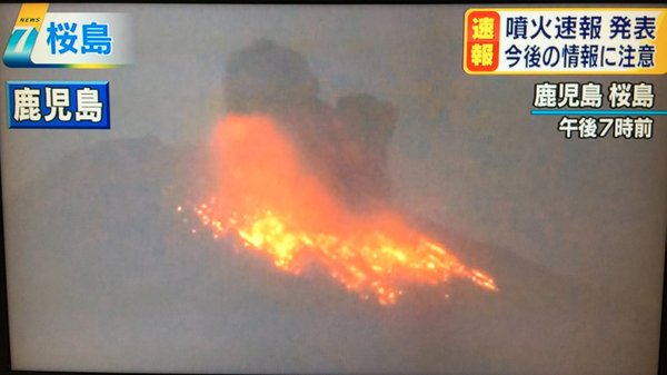 BREAKING: #Japan‘s southwestern #volcano Mt. Sakurajima erupts (local TV pic) pic.twitter.com/65XrgLWJob