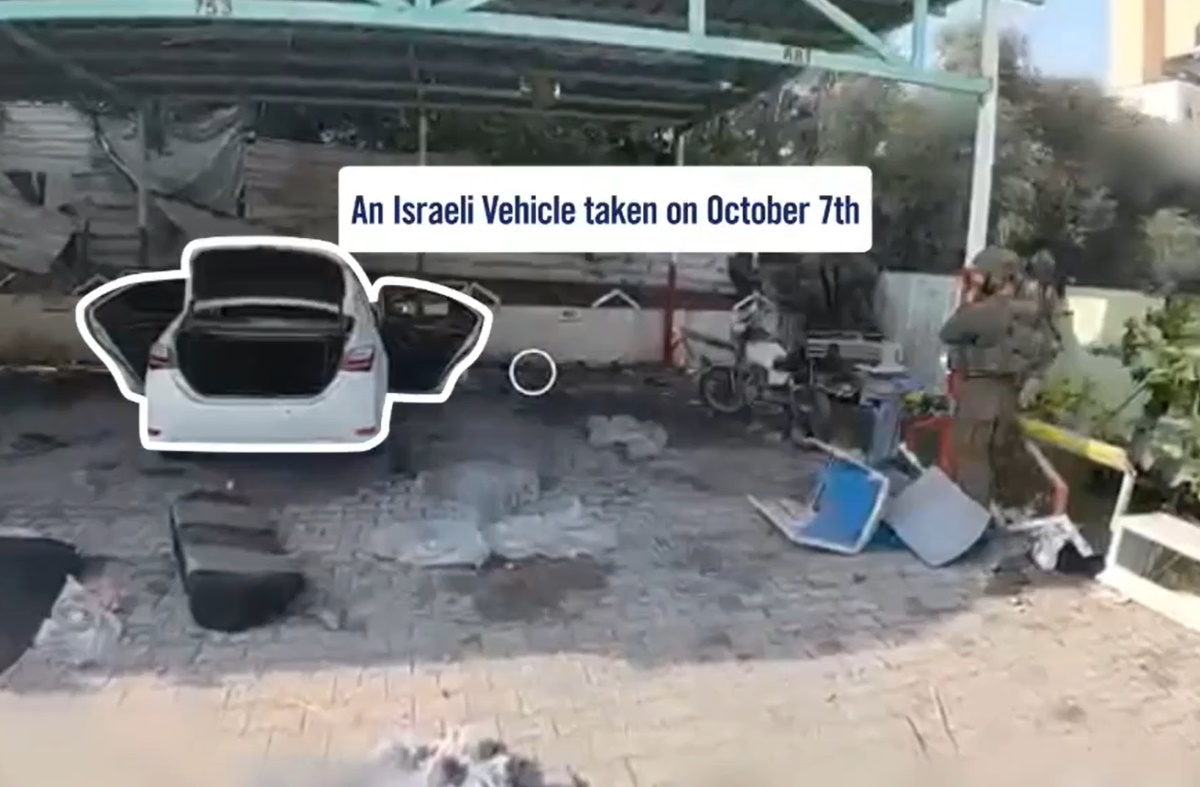 Στο αυτοκίνητο αυτό βρέθηκαν θραύσματα από RPG και ίχνη αίματος που διαπιστώθηκε ότι προέρχονταν από έναν άλλο όμηρο. «Η ανακάλυψη του αυτοκινήτου συνδέει ευθέως το νοσοκομείο με τα κτηνώδη γεγονότα της 7ης Οκτωβρίου», υποστηρίζει ο στρατός.