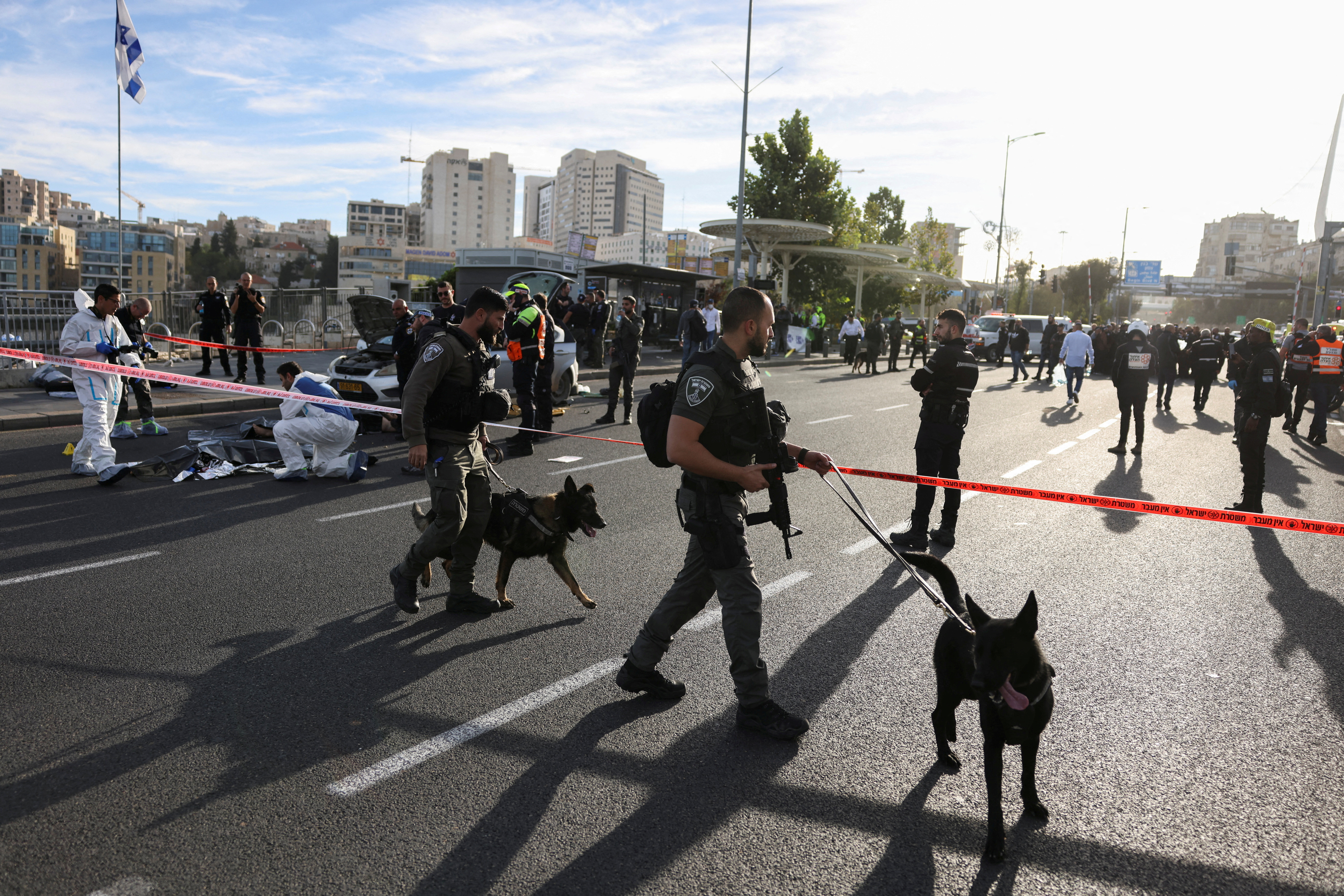 Μεγάλος αριθμός ασθενοφόρων έσπευσε στο σημείο, ενώ η αστυνομία ερευνά την περιοχή της Ιερουσαλήμ για να διασφαλίσει ότι δεν υπάρχουν άλλοι δράστες.