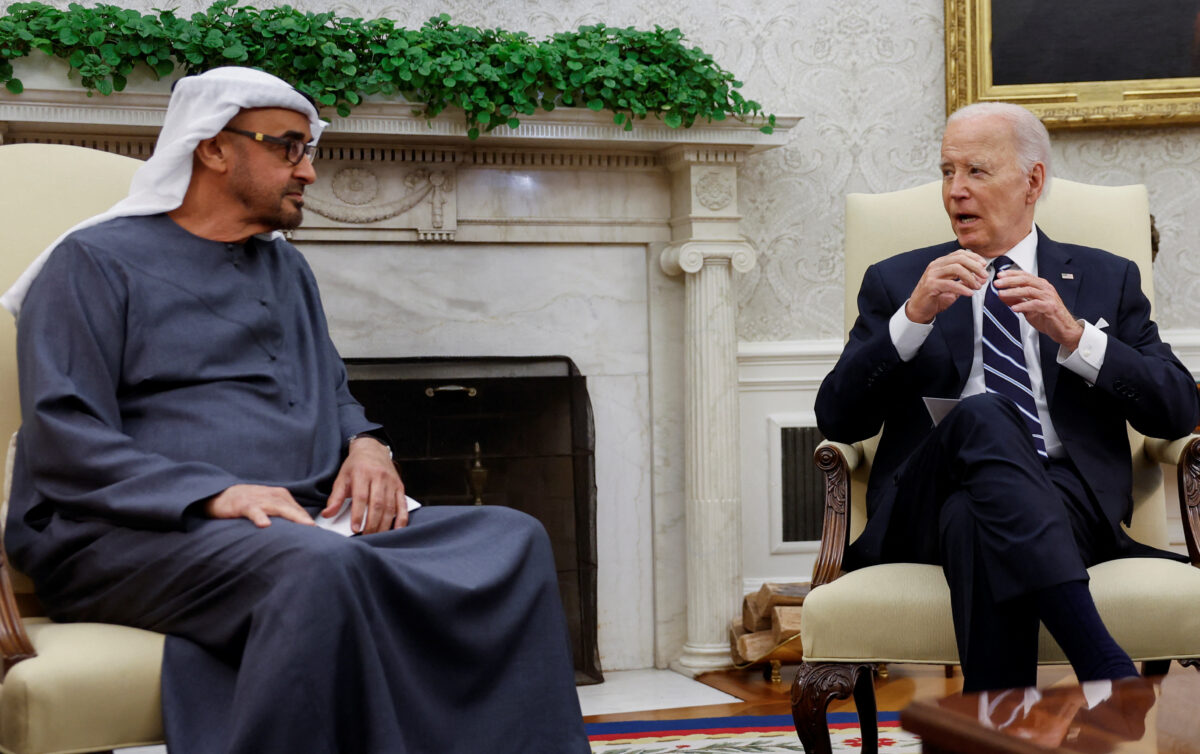 Η Αυτού Υψηλότητα ο Πρόεδρος Σεΐχης Mohamed bin Zayed και ο Πρόεδρος Biden συζήτησαν την πρόοδο στον Οικονομικό Διάδρομο Ινδίας – Μέσης Ανατολής – Ευρώπης (IMEC) που ξεκίνησε στη σύνοδο κορυφής των ηγετών της G20 το 2023 στο Νέο Δελχί μαζί με τους ηγέτες της Ινδίας, της Σαουδικής Αραβίας, της Γαλλίας, της Γερμανίας, της Ιταλίας και της Ευρωπαϊκής Ένωσης.