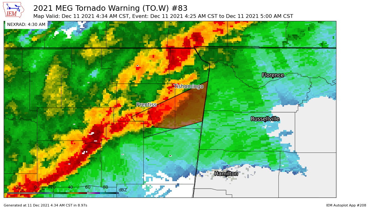Τα ακραία καιρικά φαινόμενα εκτείνονται από την κοιλάδα του Μισισιπή ως το κεντρικό Οχάιο, ενώ η αμερικανική μετεωρολογική υπηρεσία έχει εκδώσει ισχυρή προειδοποίηση για ανεμοστρόβιλους στις πολιτείες Άρκανσο, Τενεσί, Μιζούρι, Ιλινόι και Ιντιάνα.