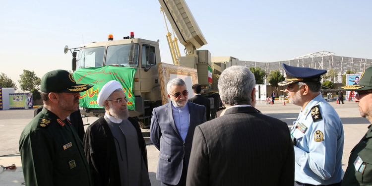 Οι εικόνες που μεταδόθηκαν από διάφορα ιρανικά μέσα ενημέρωσης δείχνουν τον πρόεδρο Ροχανί και τον υπουργό Άμυνας Χοσεΐν Ντεγάν να βρίσκονται μπροστά από το νέο αντιαεροπορικό σύστημα.