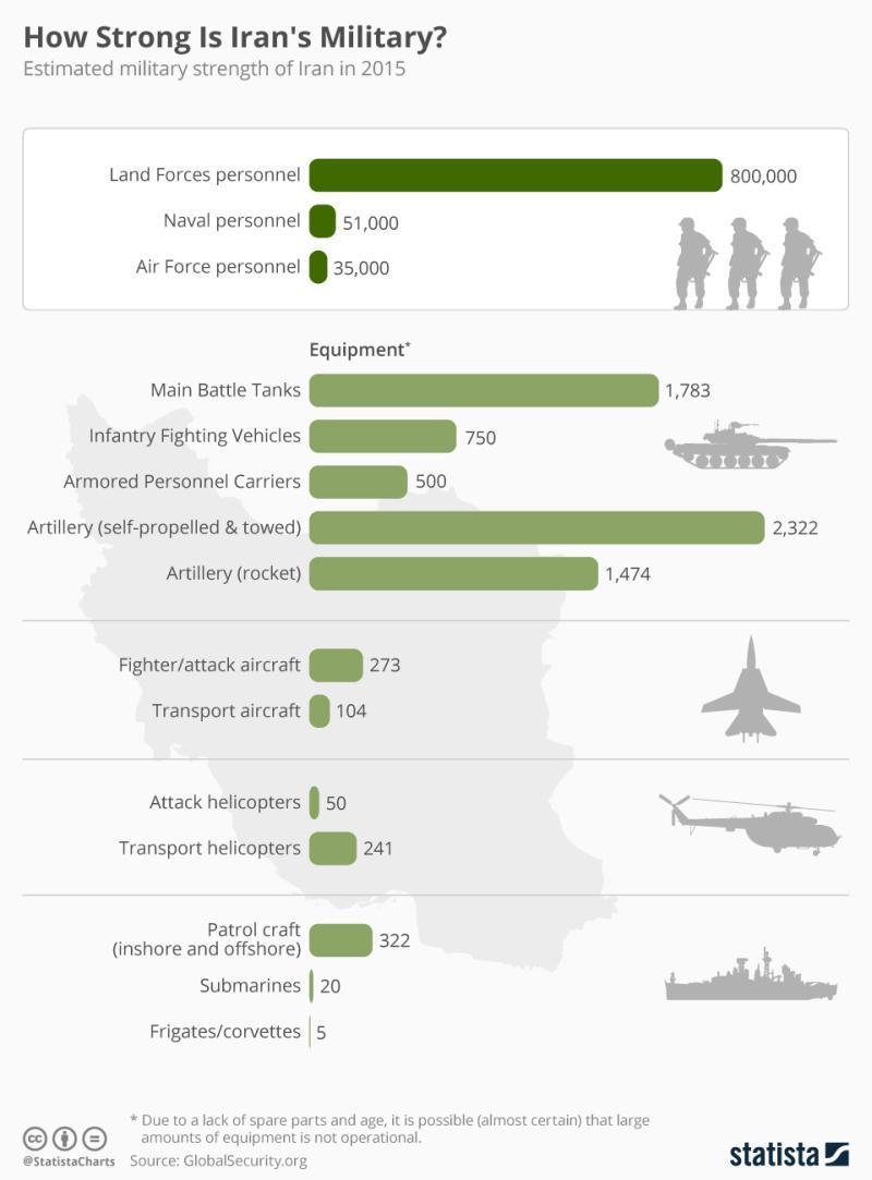 Το βέβαιο είναι πως οι Ένοπλες Δυνάμεις του Ιράν αποτελούν έναν άκρως επικίνδυνο αντίπαλο, που έχουν περιγραφεί από τον απόστρατο Στρατηγό των ΗΠΑ Τζον Αμπιζάιντ, ως η «πιο ισχυρή στρατιωτική δύναμη» της Μέσης Ανατολής.