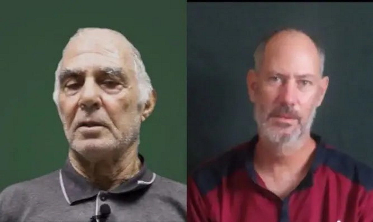 Στο βίντεο που δημοσιοποίησε ο Ισλαμικός Τζιχάντ, εμφανίζονται συγκεκριμένα οι Ισραηλινοί όμηροι Elad Katzir, 47 ετών, και Gadi Mozes, 79.