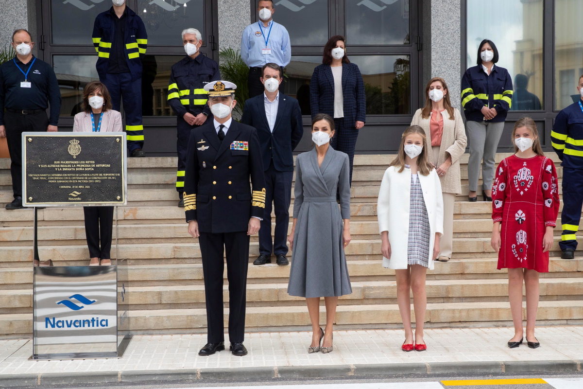 Η βασιλική οικογένεια λόγω της πανδημίας φορούσε μάσκες σε όλη την διάρκεια της επίσκεψή τους στο ναυπηγείο όπου κατασκευάστηκε το Isaac Peral.