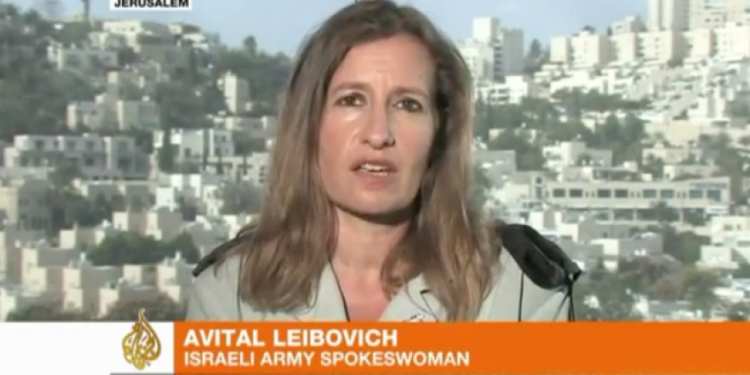 Η Avial Leibovich, είναι η εκπρόσωπος των Ισραηλινών ΕΔ. Το βίντεο είναι από ζωντανή της συνέντευξη στο Al Jazeera. Άσχετα από το αν διαφωνεί κάποιος μαζί της ή αν συμφωνεί η παρουσία της είναι εξαιρετική και πάνω απ΄ όλα δείχνει πως ένας πραγματικά σοβαρός στρατός -είτε μας αρέσει είτε όχι η δράση του- αντιμετωπίζει το “οπλικό σύστημα” που λέγεται ενημέρωση. Οπλικό σύστημα αναγακαίο σε περιπτώσεις κρίσεων.