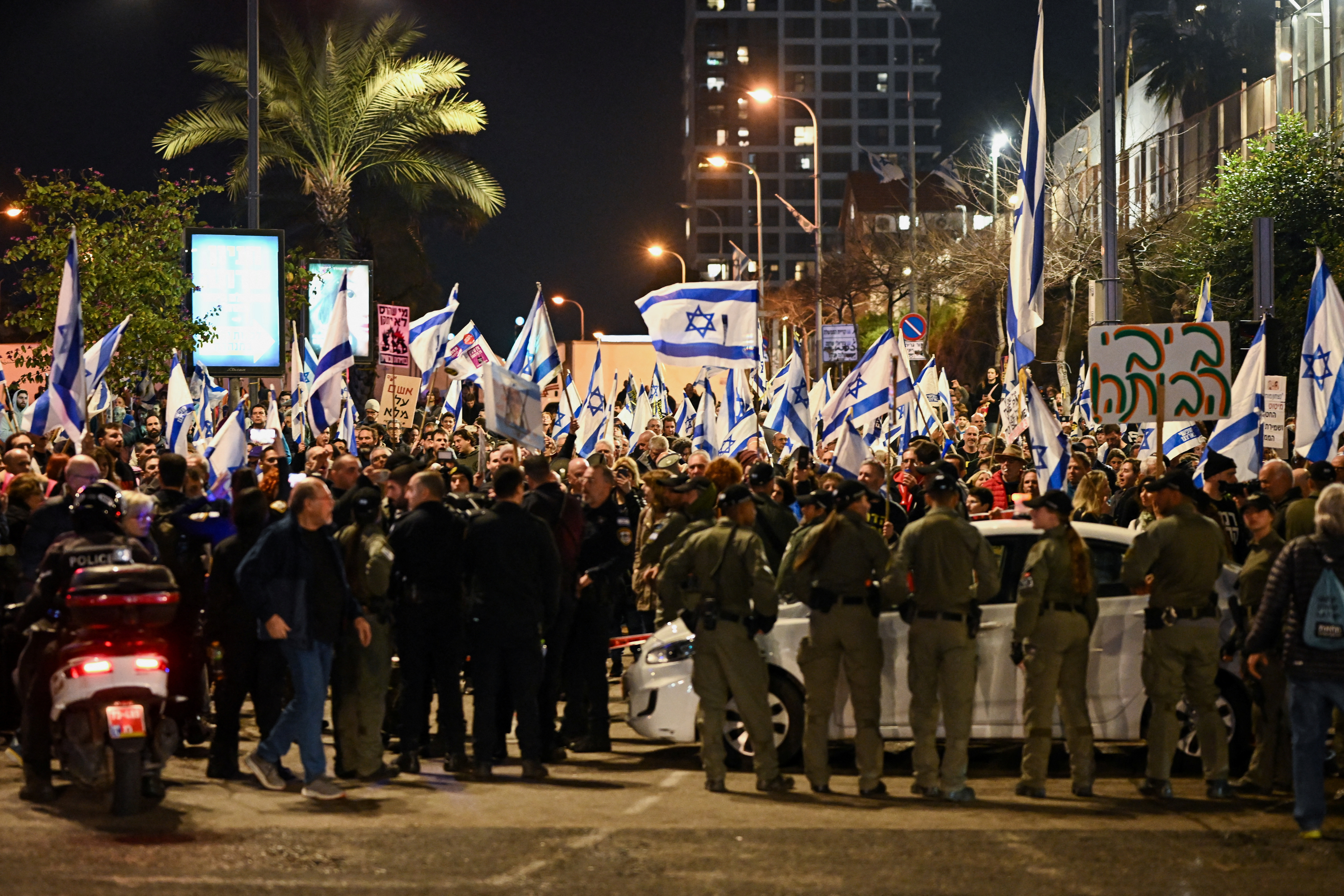 Χιλιάδες άνθρωποι διαδήλωσαν το βράδυ του Σαββάτου 24.2.2024 σε αρκετές πόλεις του Ισραήλ, ζητώντας επιτακτικά την επίτευξη συμφωνίας για την απελευθέρωση των ομήρων της Χαμάς και αποδοκιμάζοντας την κυβέρνηση Νετανιάχου.