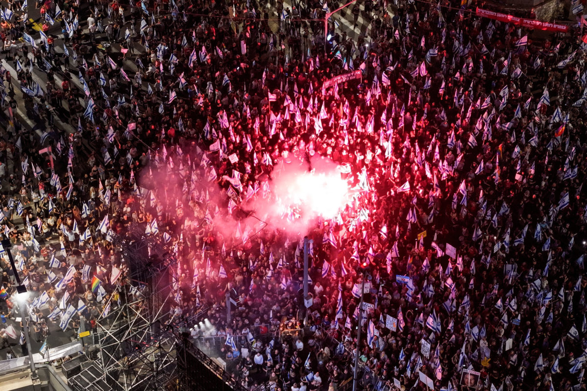 Περισσότεροι από 100.000 Ισραηλινοί διαδήλωσαν χθες Σάββατο στο Τελ Αβίβ κατά της κυβέρνησης Νετανιάχου, ενώ ανάλογες κινητοποιήσεις πραγματοποιήθηκαν επίσης σε αρκετές πόλεις του Ισραήλ. Οι αντικυβερνητικές διαδηλώσεις που πυροδότησε η αμφιλεγόμενη μεταρρύθμιση του δικαστικού συστήματος συνεχίζονται για 38η εβδομάδα.