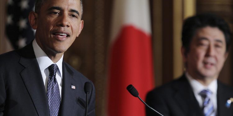 Κατά τη συνάντησή του με τον πρωθυπουργό Σίνζο Άμπε, ο Ομπάμα επεδίωξε να καθησυχάσει την Ιαπωνία για την αμερικανική παρουσία, σε μια περίοδο που υπάρχει ισχυρή ένταση ανάμεσα στο Τόκιο και το Πεκίνο σχετικά με τα νησιά Σενκάκου, ένα ακατοίκητο αρχιπέλαγος της Ανατολικής Σινικής Θάλασσας που ελέγχεται από τους Ιάπωνες, αλλά διεκδικείται έντονα από τους Κινέζους, οι οποίοι ονομάζουν το αρχιπέλαγος Ντιαογιού.