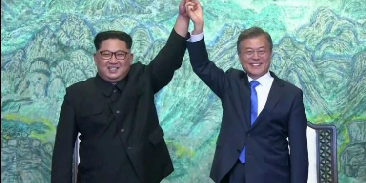 Ο Βορειοκορεάτης ηγέτης Κιμ Γιονγκ- Ουν και ο πρόεδρος της Νότιας Κορέας Μουν Τζε- Ιν συζήτησαν την αποπυρηνικοποίηση της κορεατικής χερσονήσου, τη σύναψη ειρηνευτική συμφωνίας και τη βελτίωση των διακορεατικών σχέσεων, είχε ανακοινώσει νωρίτερα ο Κυανός Οίκος (σ.σ. η προεδρία της Νότιας Κορέας).