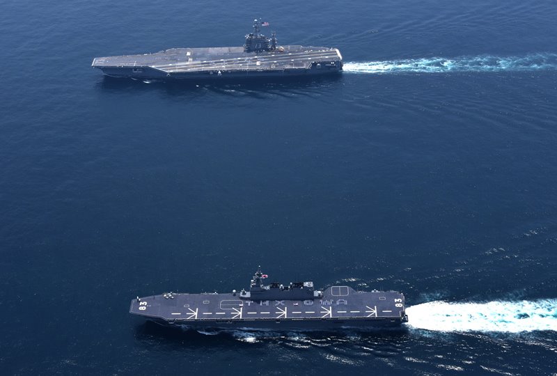 Όσον αφορά τα ελικοπτεροφόρα κατηγορίας Izumo των 19.500 τόνων της Ναυτικής Δύναμης Αυτοάμυνας της Ιαπωνίας, έχουν μήκος 248 μέτρα και μπορούν να μεταφέρουν μέχρι και 14 ελικόπτερα. Πρόκειται για τα μεγαλύτερα πολεμικά πλοία της Ιαπωνίας μεταπολεμικά.