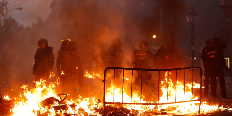 Έχοντας καλυμμένα τα πρόσωπα τους, διαδηλωτές συγκρούστηκαν με την αστυνομία στο κέντρο της Βαρκελώνης την Παρασκευή, στο πλαίσιο της πέμπτης ημέρας των κινητοποιήσεων ενάντια στη φυλάκιση των αυτονομιστών ηγετών, για τον ρόλο τους στην αποσχιστική κρίση του 2017.