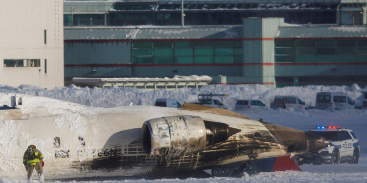 Αεροσκάφος της αμερικανικής εταιρείας Delta Airlines με 80 επιβαίνοντες υπέστη ατύχημα κατά την προσγείωσή του στο χιονισμένο Τορόντο χθες Δευτέρα 17.2.2025, αναποδογύρισε στον διάδρομο, συμβάν που είχε αποτέλεσμα να τραυματιστούν 15 άνθρωποι, τρεις σοβαρά, σύμφωνα με τις αρχές.