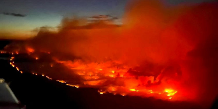 Η πυρκαγιά, που έχει ήδη μετατρέψει σε αποκαΐδια 96.000 στρέμματα δασικών εκτάσεων, απέχει πλέον μόλις 13 χιλιόμετρα από την πόλη. Δόθηκε έτσι εντολή στους κατοίκους τεσσάρων νοτίων προαστίων της να φύγουν εσπευσμένα χθες το μεσημέρι.