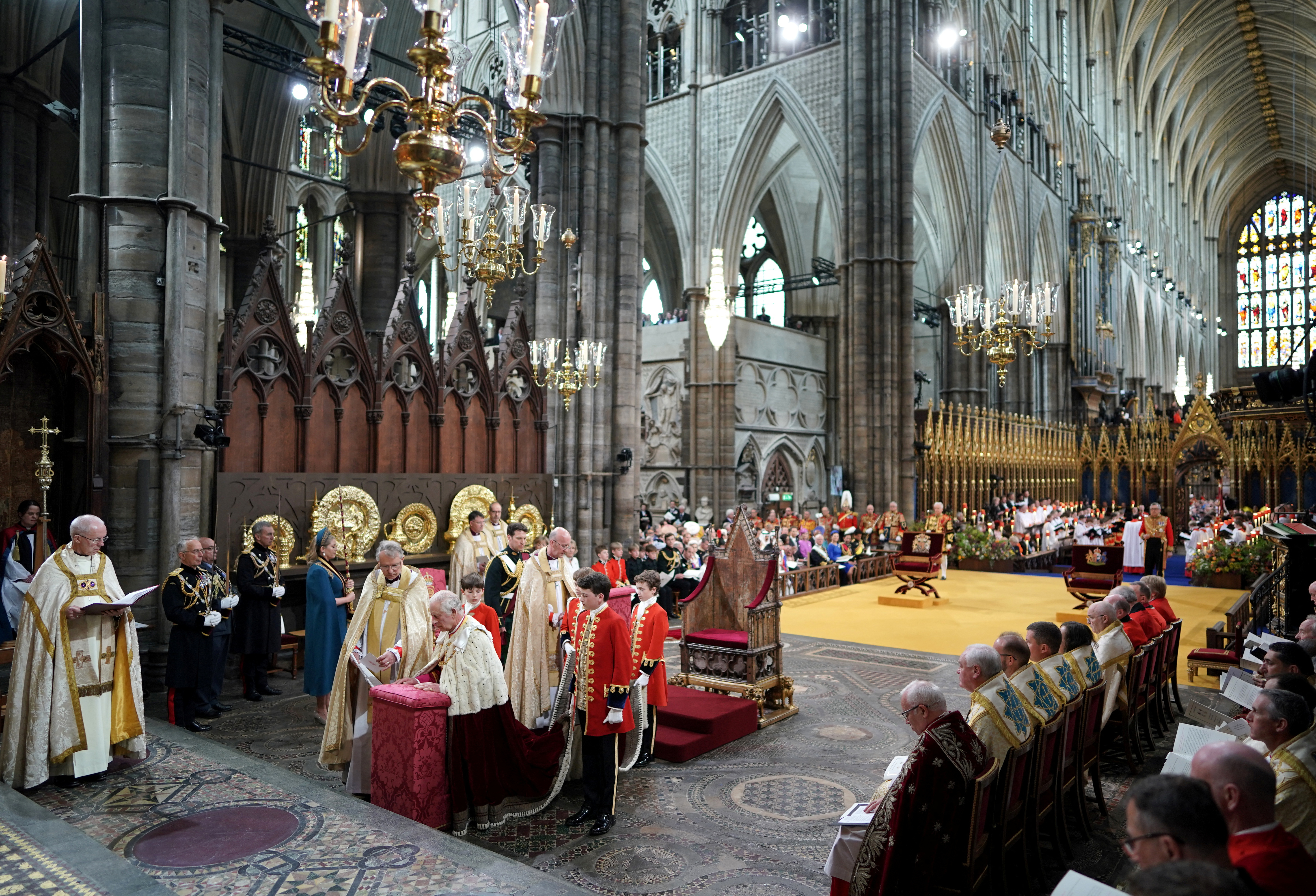 Στις 14.00 ώρα Ελλάδος, ο Κάρολος Γ‘ στέφθηκε και επίσημα βασιλιάς της Βρετανίας στο Αββαείο του Ουέστμινστερ, φορώντας το βαρύ στέμμα του Αγίου Εδουάρδου.