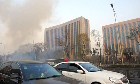 Φωτογραφίες που κυκλοφόρησαν στις κινεζικές ιστοσελίδες κοινωνικής δικτύωσης δείχνουν καπνό πάνω από την λεωφόρο όπου βρίσκονται τα γραφεία του κόμματος και οχήματα με σπασμένα τζάμια.
