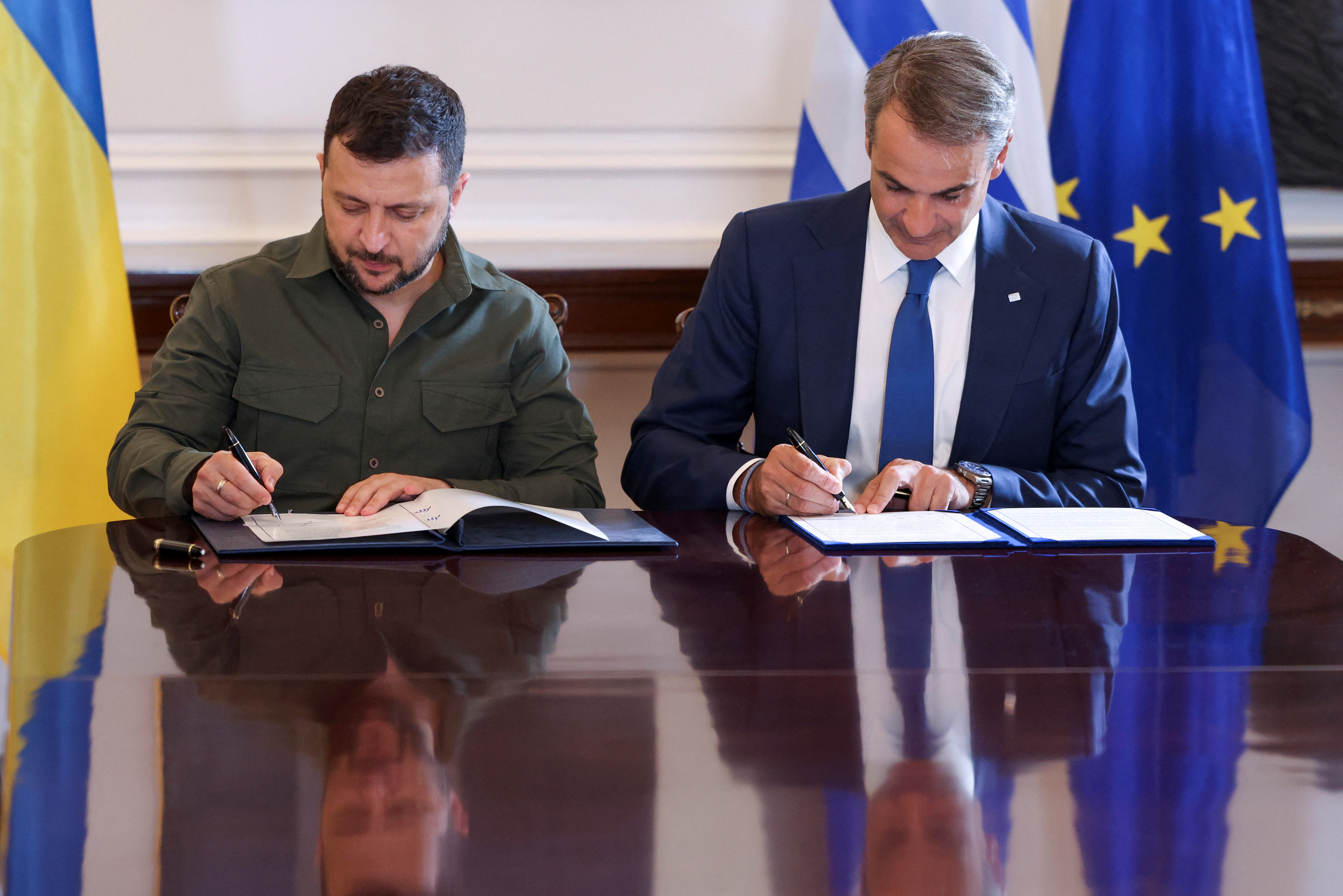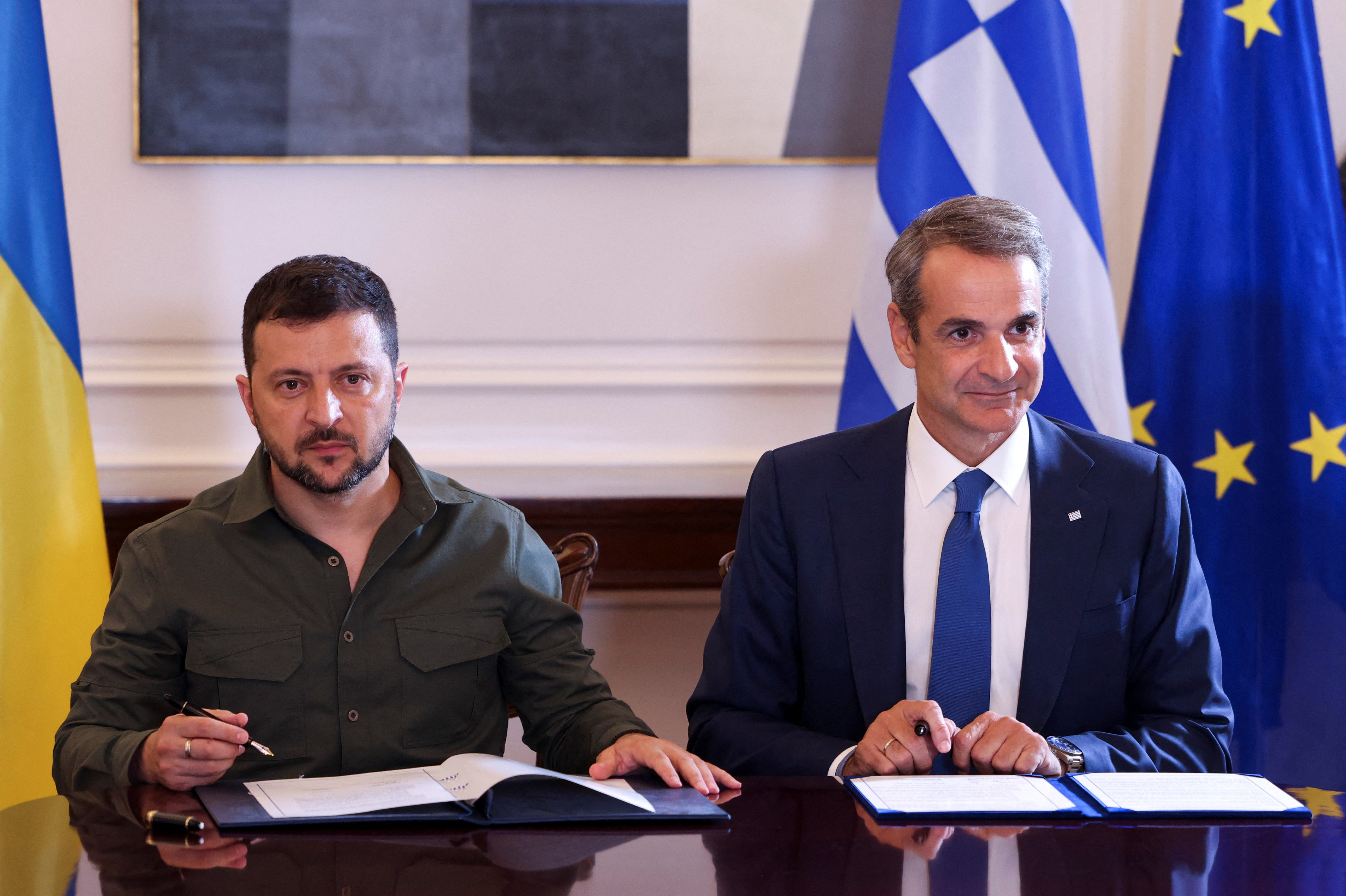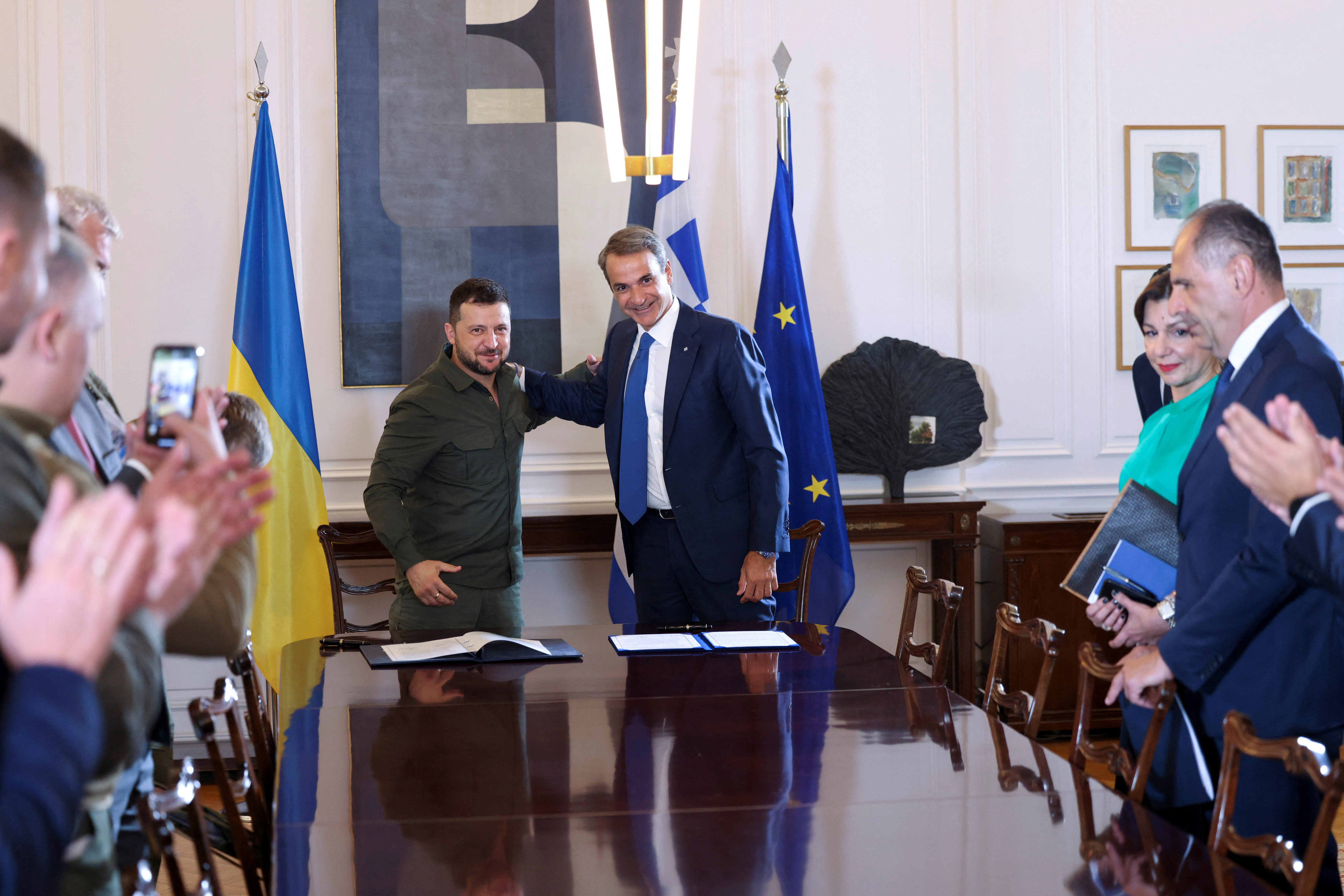 Όπως υπογραμμίζεται στην κοινή δήλωση, η Αθήνα θα συνεχίσει να υποστηρίζει το Κίεβο στρατιωτικά,