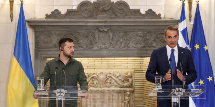 «Σήμερα με τον Έλληνα πρωθυπουργό συζητήσαμε τις προτεραιότητες της Ουκρανίας για να αντιμετωπίσουμε τη ρωσική εισβολή», δήλωσε ο Βολοντίμιρ Ζελένσκι.