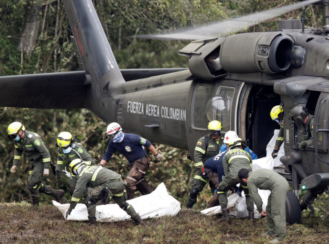 Δεκάδες πτώματα κείτονταν, σκεπασμένα με σεντόνια, γύρω από τα συντρίμμια του αεροσκάφους BA 146 της βολιβιανής εταιρείας Lamia που συνετρίβη κοντά στη Λα Ουνιόν, μια κωμόπολη έξω από το Μεντεγίν.