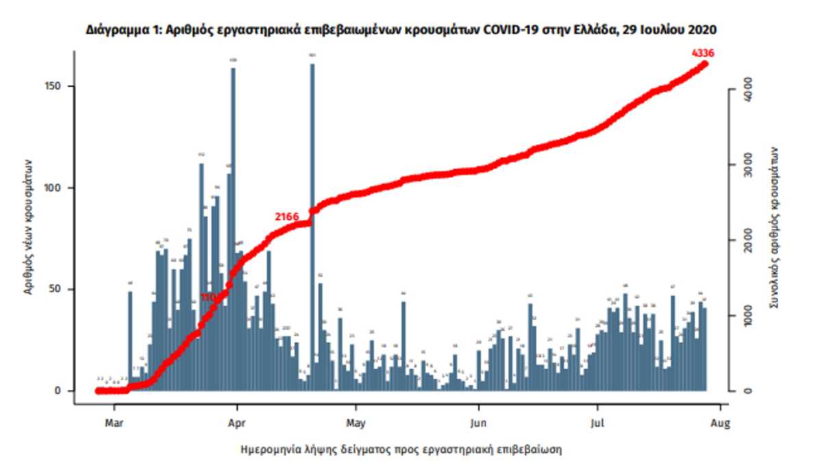 Τα στοιχεία που παρουσιάζονται αφορούν περιστατικά από την επιδημιολογική επιτήρηση της νόσου από το νέο κορωνοϊό (COVID19), με βάση τα δεδομένα που έχουν δηλωθεί στον ΕΟΔΥ και καταγραφεί μέχρι τις 29 Ιουλίου 2020 (ώρα 15:00).