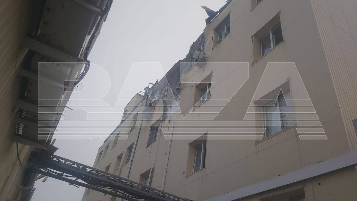 Ο φιλορωσικός ειδησεογραφικός οργανισμός Readovka ανάρτησε στο Telegram φωτογραφία ακινήτου ο τελευταίος όρος του οποίου και η οροφή του έχουν υποστεί ζημιά και έχουν μαυρίσει από τις φλόγες.