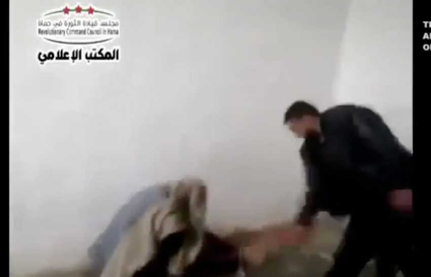 Κτηνωδία των λεγόμενων «αντικαθεστωτικών» στη Συρια. Μια γυναίκα δεμένη πεσμένη στο πάτωμα, σκεπασμένη για να μη βλέπει ουρλιάζει και εκλιπαρεί τους βασανιστές της. Την μαστιγώνουν με μανία και τα γέλια τους ακούγονται καθαρά στο βίντεο που έχει αναρτηθεί προφανώς από τους ίδιους.
