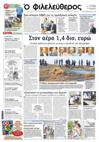 «Ο Φιλελεύθερος» κάτω από τον τίτλο «Στον αέρα 1,4 δις ευρώ» γράφει ότι οι επενδυτές αξιογράφων φαίνεται να είναι εντελώς ακάλυπτοι προσθέτοντας ότι η όποια διευθέτηση που θα αλλάξει την κατάσταση με τα αξιόγραφα θα πρέπει να περάσει από την κρίση της Τρόικας. Αλλού γράφει ότι το ΔΗΚΟ έχει τρία σενάρια για τον πρώτο γύρο στις προεδρικές: Αυτόνομη κάθοδο, Ενδιάμεσο και Αναστασιάδη. Γράφει ακόμα ότι οι 6 κατηγορούμενοι για την έκρηξη στο Μαρί απάντησαν 208 «όχι» σε ισάριθμες κατηγορίες.