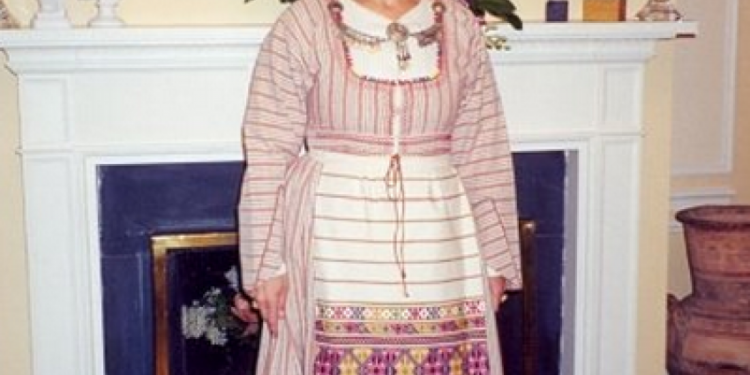 Στην φωτογραφία η Ε.Κοζάκου με την σχετική ενδυμασία όταν είχε υποδεχθεί το ζεύγος Κλίντον