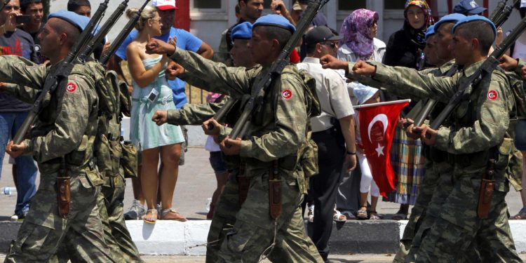 Παρέλαση του τουρκικού στρατού και των τουρκοκυπριακών «ενόπλων δυνάμεων» πραγματοποιήθηκε το πρωί στην κατεχόμενη Λευκωσία, με την ευκαιρία της 37ης επετείου της τουρκικής εισβολής. Το χαιρετισμό της παρέλασης δέχτηκαν από ειδική εξέδρα ο Τούρκος Πρωθυπουργός Ρ.Τ. Ερντογάν και τουρκοκύπριος ηγέτης Ντερβίς Έρογλου.