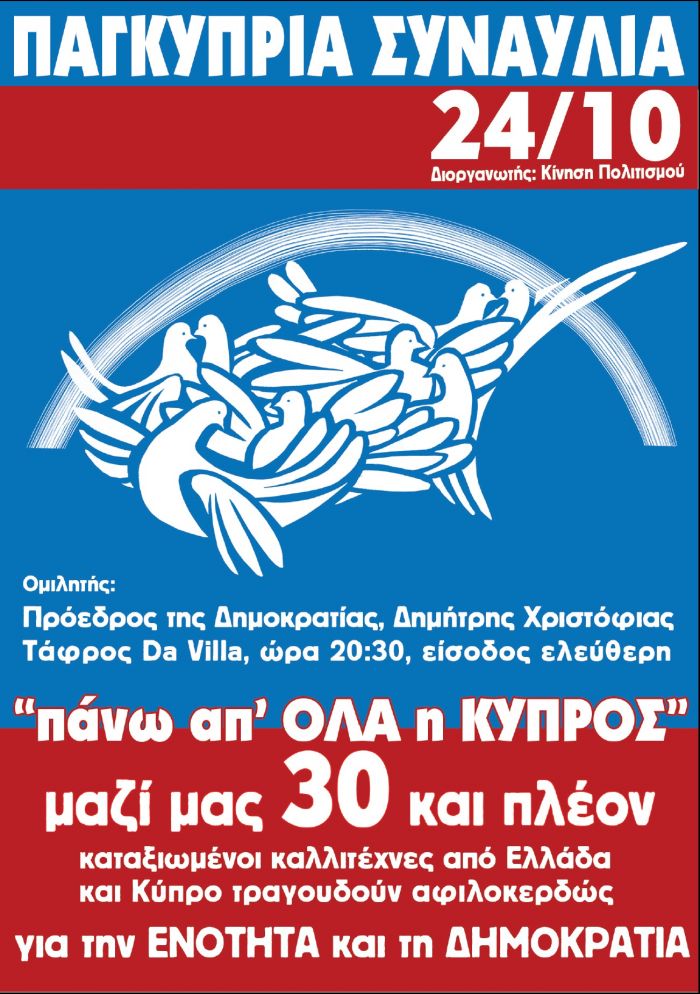Μια συναυλία στην οποία θα συμμετάσχουν πολλοί γνωστοί τραγουδιστές και συνθέτες έχει “διχάσει” τη Κύπρο. Η εκδήλωση χαρακτηρίζεται ως προσπάθεια στήριξης του προέδρου Δ.Χριστόφια,ο οποίος θα μιλήσει κιόλας.