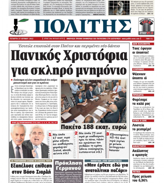 Ο Πολίτης στο πρωτοσέλιδο του «Εστειλε επιστολή στον Πούτιν και περιμενει νέο δάνειο. Πανικός Χριστόφια για σκληρο μνημόνιο.»