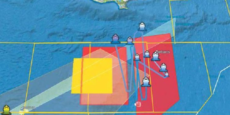 Το Μπαρμπαρός, που τις τελευταίες μέρες πραγματοποιούσε παράνομες σεισμογραφικές έρευνες κυρίως στο τεμάχιο 8, στην περιοχή που «δέσμευσε» παράνομα η Τουρκία για το σκοπό αυτό, εξέρχεται σαφώς της πορείας του εντός της παράνομα «δεσμευμένης ζώνης», για να κάνει έρευνες πάνω από τις περιοχές που σταματά για έρευνα το Nautical Geo.