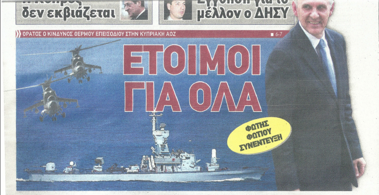 Στην ίδια συνέντευξη ο κ.Φωτίου επαναλαμβάνει τα περί προμήθειας δύο νέων πολεμικών πλοίων -από το Ισραήλ λένε όλες οι πληροφορίρες- για τις ανάγκες επιτήρησης της ΑΟΖ.