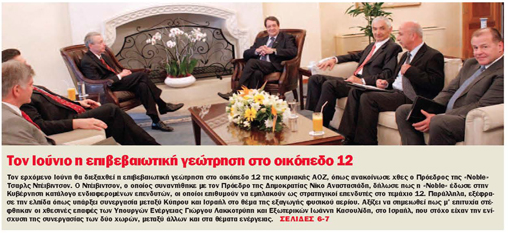 Η αγγλόγλωσση “Cyprus Mail”, υπό τον κύριο τίτλο «Η Κεντρική Τράπεζα δίνει τη λίστα των 6.000» γράφει ότι η Κεντρική έδωσε στους νομοθέτες ένα κατάλογο 6.000 εταιρειών και ατόμων που μετέφεραν χρήματα από την Κύπρο ως και 15 μέρες πριν την απόφαση του Eurogroup, παραθέτοντας επίσης δηλώσεις του Δημήτρη Συλλούρη για το γεγονός ότι είχαν ζητηθεί στοιχεία για ένα χρόνο και όχι για 15 μέρες και ο οποίος έκανε λόγο για «απαράδεκτη συμπεριφορά». Σε άλλο της θέμα η εφημερίδα επικαλείται αναφορές σε ομιλία του Προέδρου Αναστασιάδη ότι το φυσικό αέριο αποτελεί τώρα «τον ακρογωνιαίο λίθο» της κυβερνητικής πολιτικής. Αλλού γράφει ότι ισχυρός σεισμός χτύπησε κοντά στο μοναδικό πυρηνικό εργοστάσιο του Ιράν χθες σκοτώνοντας 32 ανθρώπους και τραυματίζοντας 850.