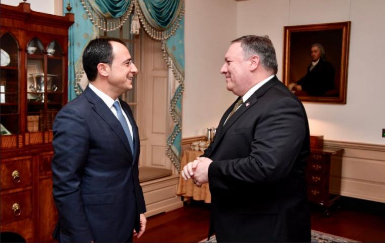 «Χθες, ο υπουργός Μάικ Πομπέο συναντήθηκε με τον υπουργό Εξωτερικών της Κυπριακής Δημοκρατίας κ. Νίκο Χριστοδουλίδη στο Υπουργείο Εξωτερικών. Ο υπουργός Μάικ Πομπέο και ο Υπουργός Εξωτερικών Χριστοδουλίδης συμφώνησαν ότι είναι σημαντικό να ενισχυθεί η σχέση ΗΠΑ-Κυπριακής Δημοκρατίας και χαιρέτισαν την υπογραφή από τον υπουργό Εξωτερικών Χριστοδουλίδη και τον υφυπουργό Εξωτερικών αρμόδιο για τις Ευρωπαϊκές και Ευρασιατικές Υποθέσεις Γουές Μίτσελ δήλωσης προθέσεων για την ενίσχυση και την ανάπτυξη των διμερών σχέσεων ασφάλειας. Η δήλωση προθέσεων θα προωθήσει τα κοινά συμφέροντα στην καταπολέμηση της τρομοκρατίας, στην ενίσχυση της ασφάλειας στη θάλασσα και στα σύνορα και στην προώθηση της περιφερειακής ασφάλειας».