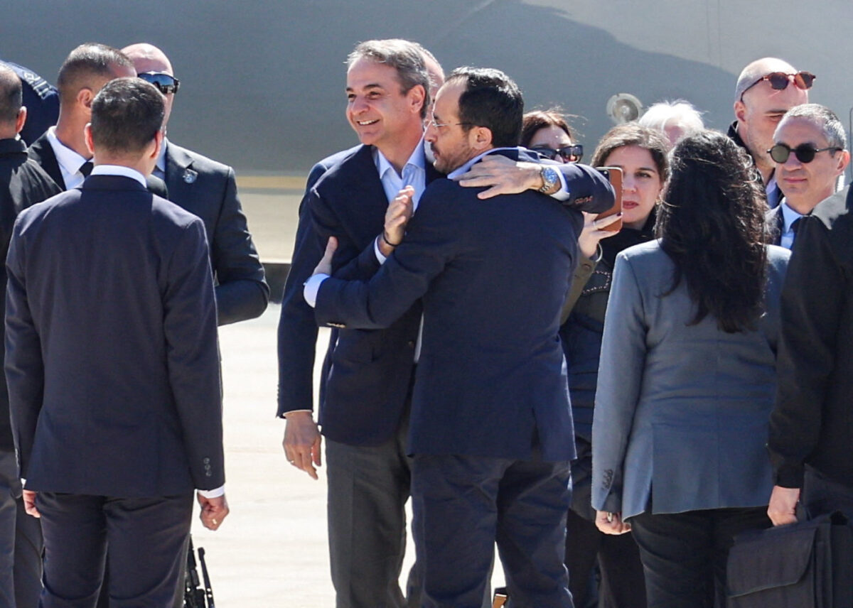 Ο πρωθυπουργός Κυριάκος Μητσοτάκης προσγειώθηκε στο αεροδρόμιο της Πάφου, όπου τον υποδέχτηκε ο Πρόεδρος της Κυπριακής Δημοκρατίας Νίκος Χριστοδουλίδης, ενώ λίγο αργότερα έφτασε και ο Γάλλος Πρόεδρος Εμανουέλ Μακρόν.