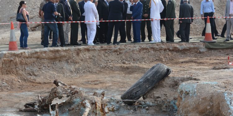 Τον Έλληνα υπουργό ενημέρωσε διεξοδικά ο επικεφαλής της ανασκαφής, Ξενοφών Καλλής, ο οποίος είπε ότι έχουν εντοπιστεί οστά, αλλά απέφυγε να αναφέρει αριθμό. Σημείωσε, όμως, ότι βρίσκονται σε καλή κατάσταση και αναμένεται να γίνει εξέταση DNA.